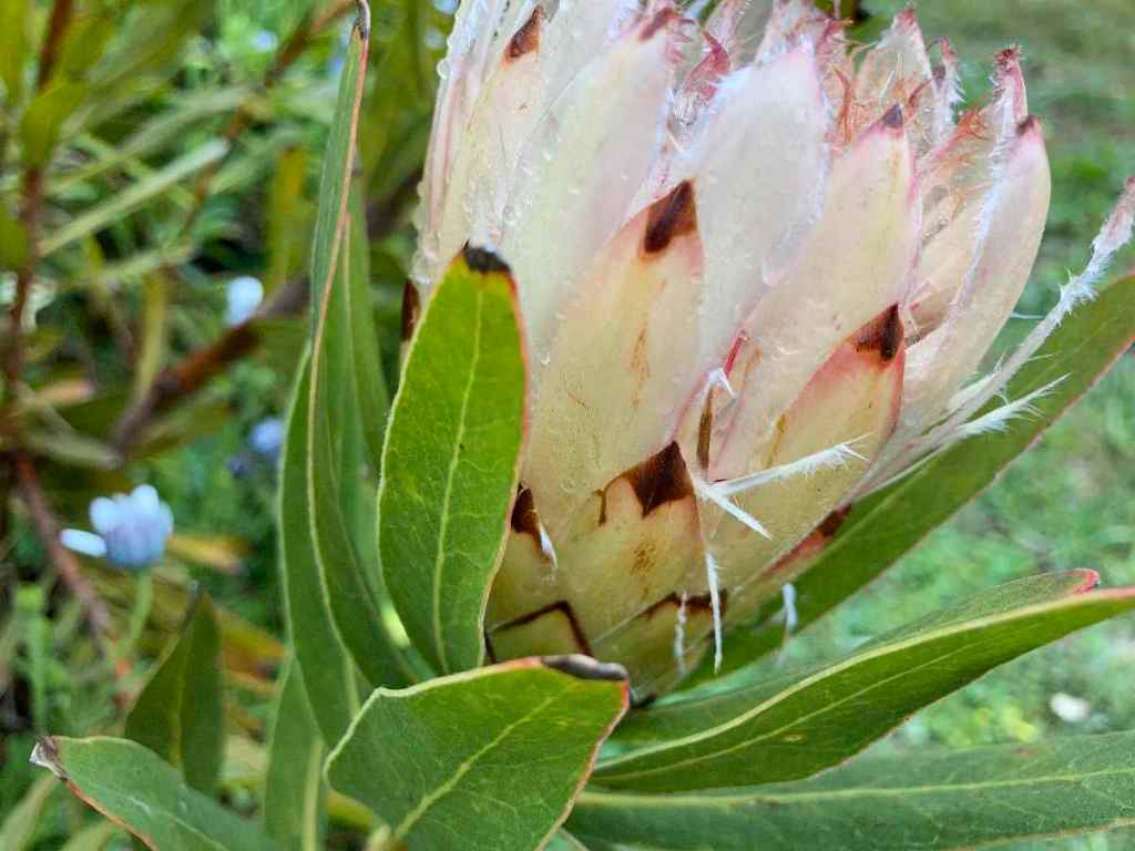 Most people are familiar with pink proteas. I spied this cream one in a nursery on a trip away, many years ago and I have treasured it ever since.