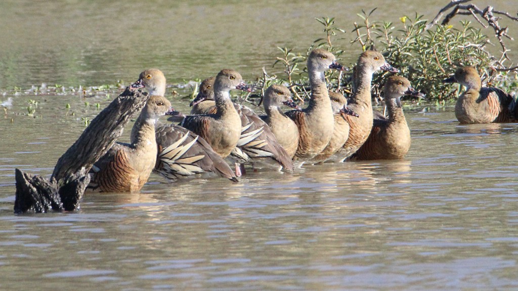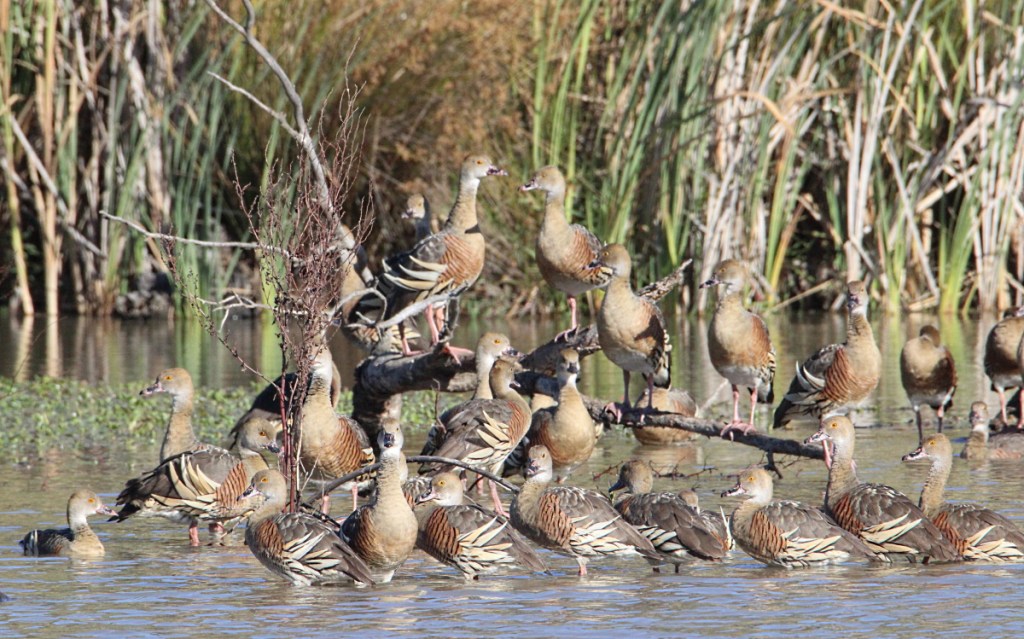 Whistling ducks have made a permanent home at Longmore lagoon as they get a free feed at the feedlot.