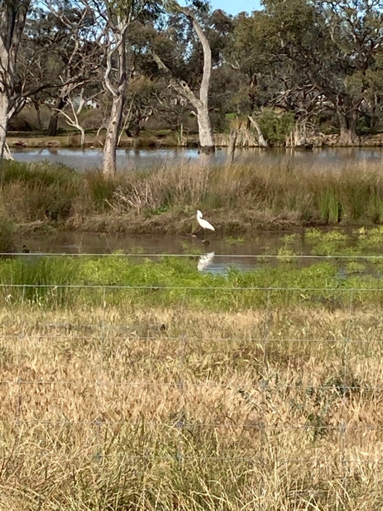 This spot is about half a kilometre from my house. I drive past many times a day as it is on the way to the highway and bus stop for the grankid’s school bus. It must be a great fishing spot. However, it’s only the birds that seem to realise! I always look carefully to see who is lurking about. Here’s the latest visitor.