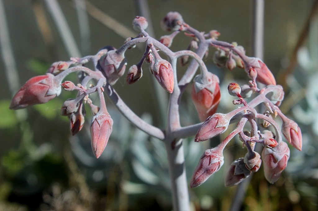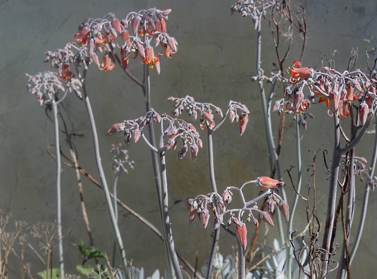 It’s an old wheelbarrow, minus wheels, sitting on the ground, a container for this odd plant that I like a lot.