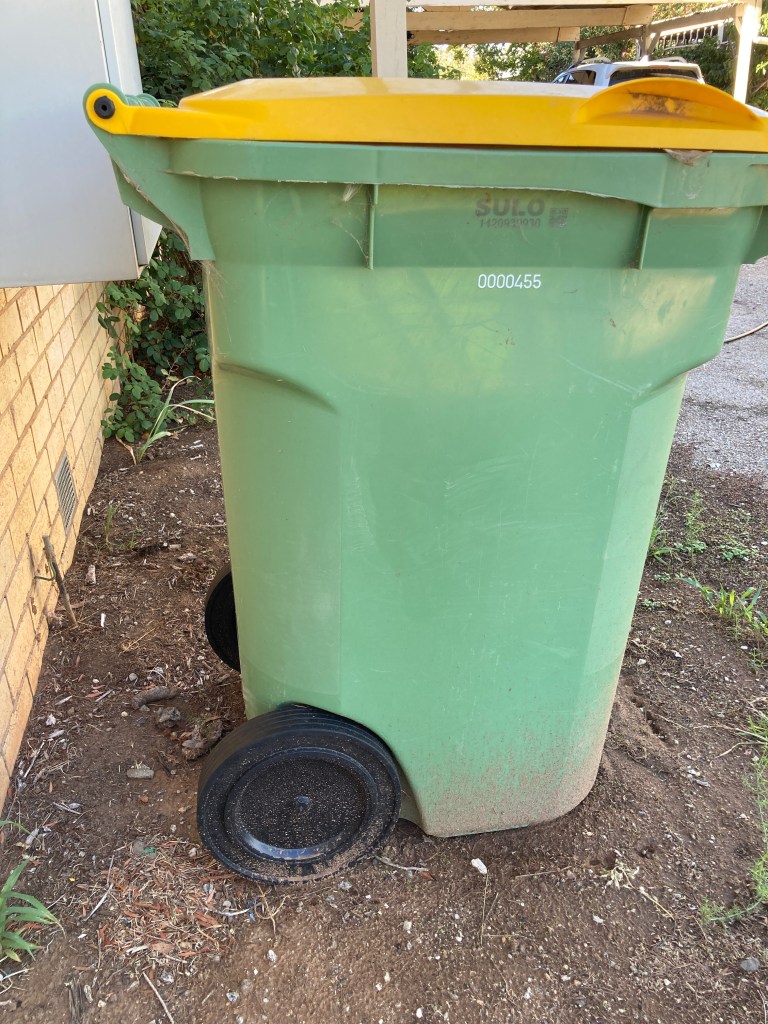 I was delighted to arrive at my shop to find my wheelie bin sporting new wheels . Thanks to the good fairies who fixed it