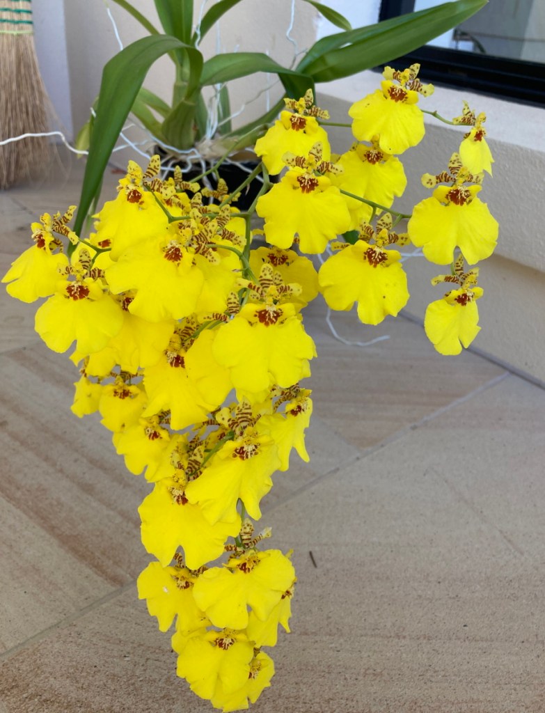 My friend has this beautiful orchid sitting on her verandah. The color was really striking.