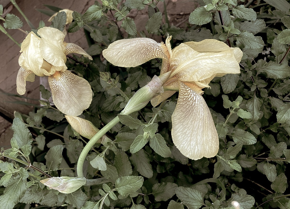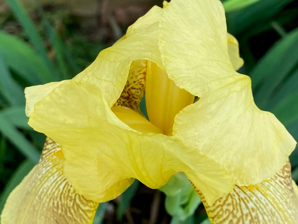 Do you know why these are called bearded irises? It’s because these plants have beards. The beards are the hairy bits on the falls. On the irises below they are yellow colored.
