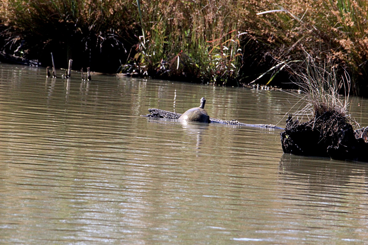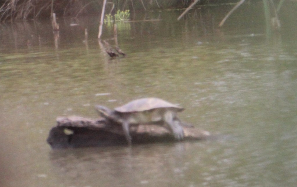 Because we’re surrounded by water, it’s not the first one we’ve noticed. We posted some pics of another turtle a while back. In the water, (click here) and another one digging a hole (click here). This one was also digging a hole in the paddock.